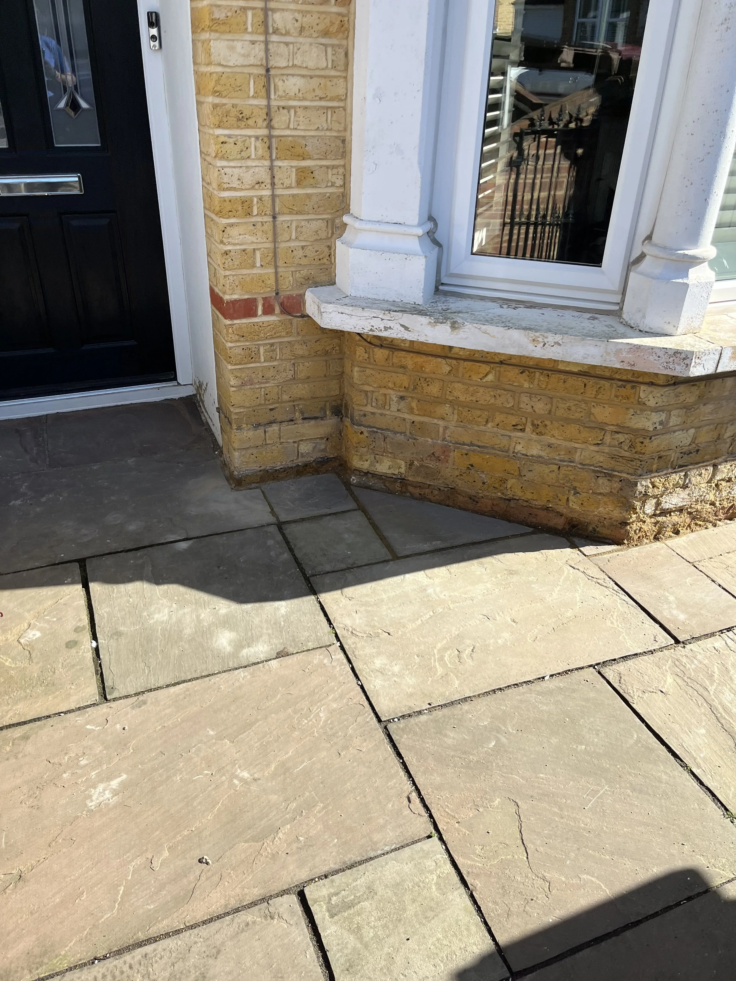 Recently we attended this one in Kent to Remove a rendered plinth which was bridging a DPC (damp proof course. Causing a phenomena usually referred to as rising damp internally.